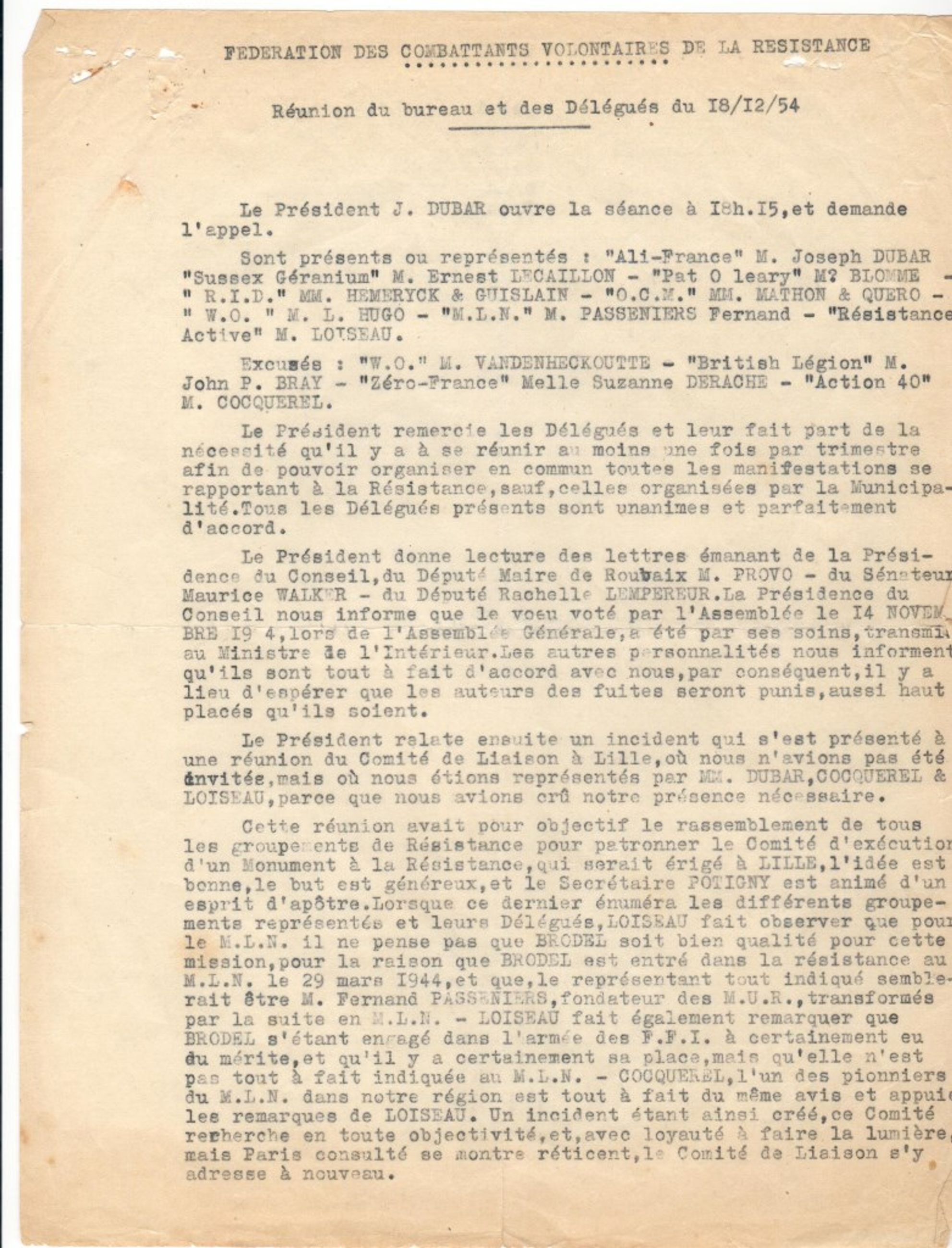 Compte rendu de réunion de la fédération des combattants volontaires de la résistance