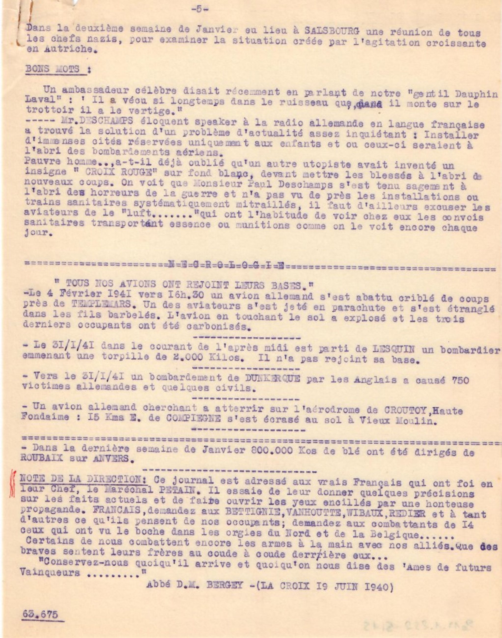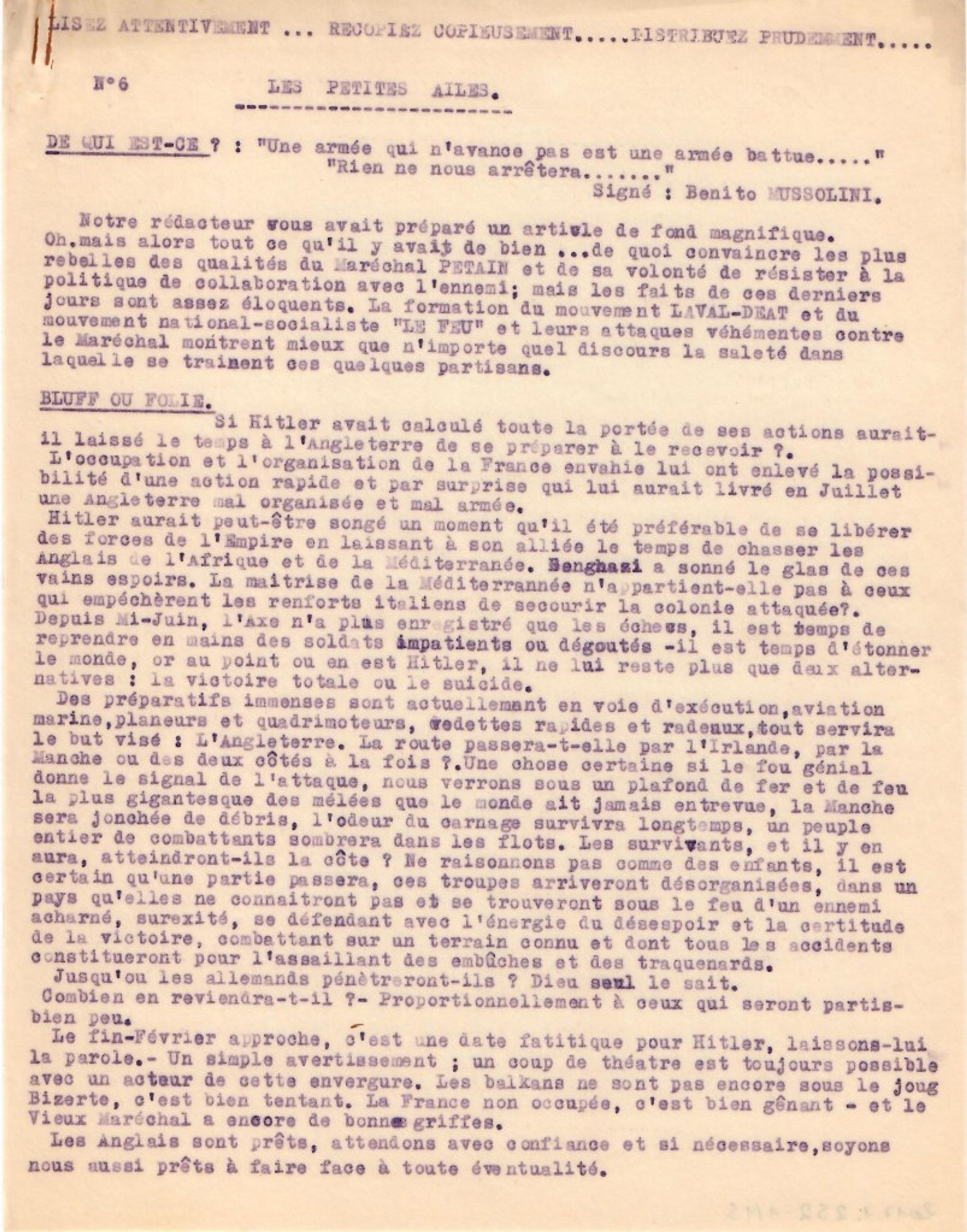 3 exemplaires du numéro 6 des Petites Ailes, journal clandestin créé par Jacques-Yves Mulliez