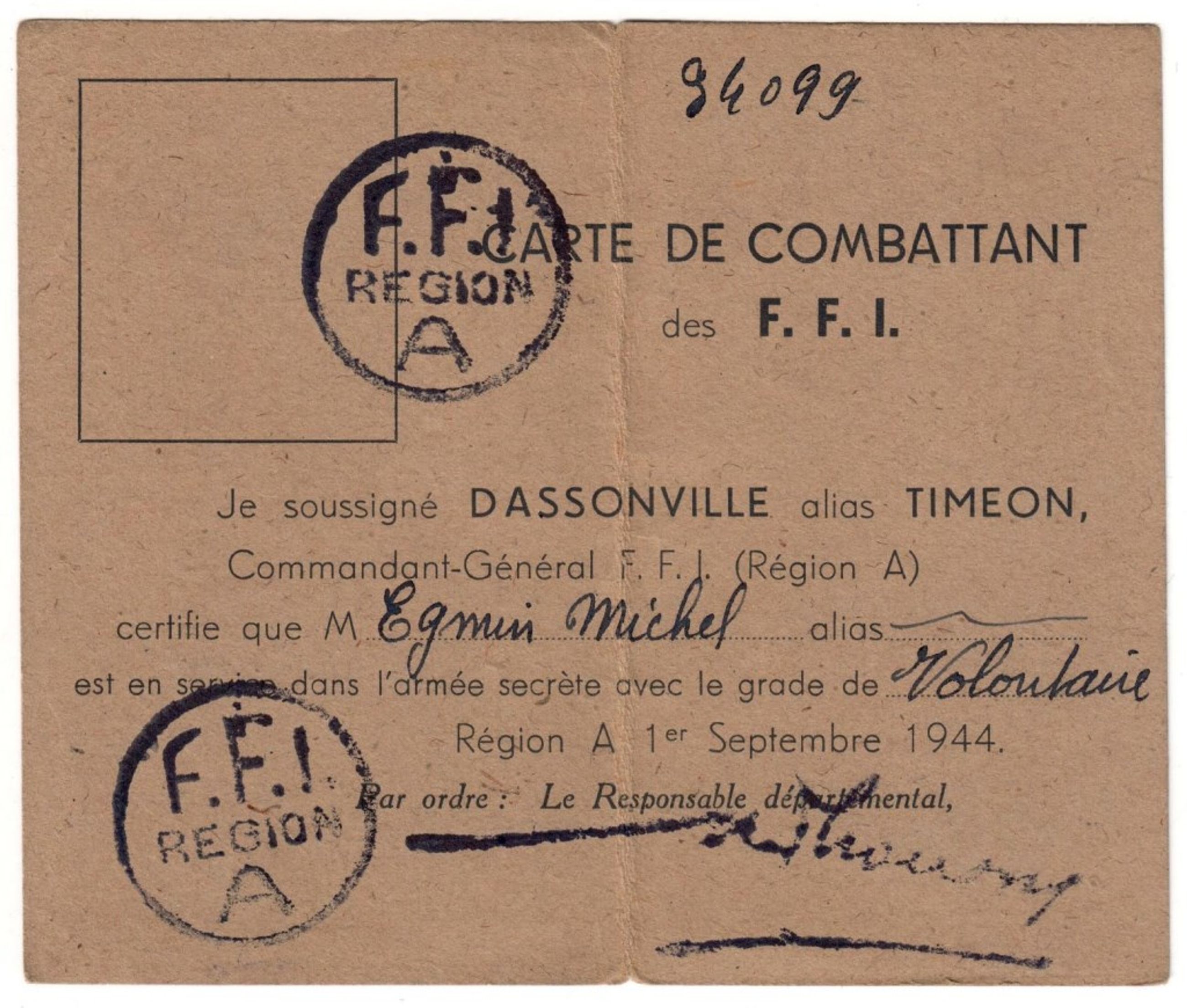 Veteran card - Carte de combattant des FFI de Michel EYMIN - 2019.10.9